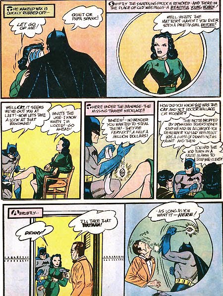 Bob Kane, debuting in the DC comic book "Batman" #1 (Spring 1940), in which the character is referred to as 'The Cat'.